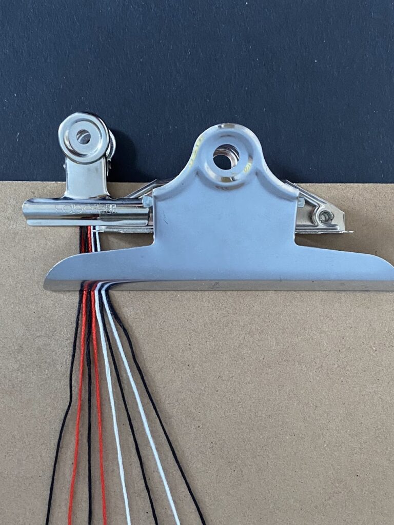 3. Fix it with a second clamp. Follow the pattern to start braiding the first row.