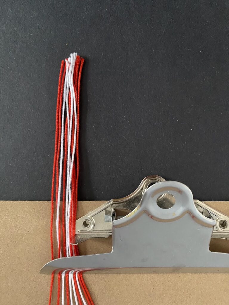3. Fix it with a second clamp. Follow the pattern to start braiding the first row.