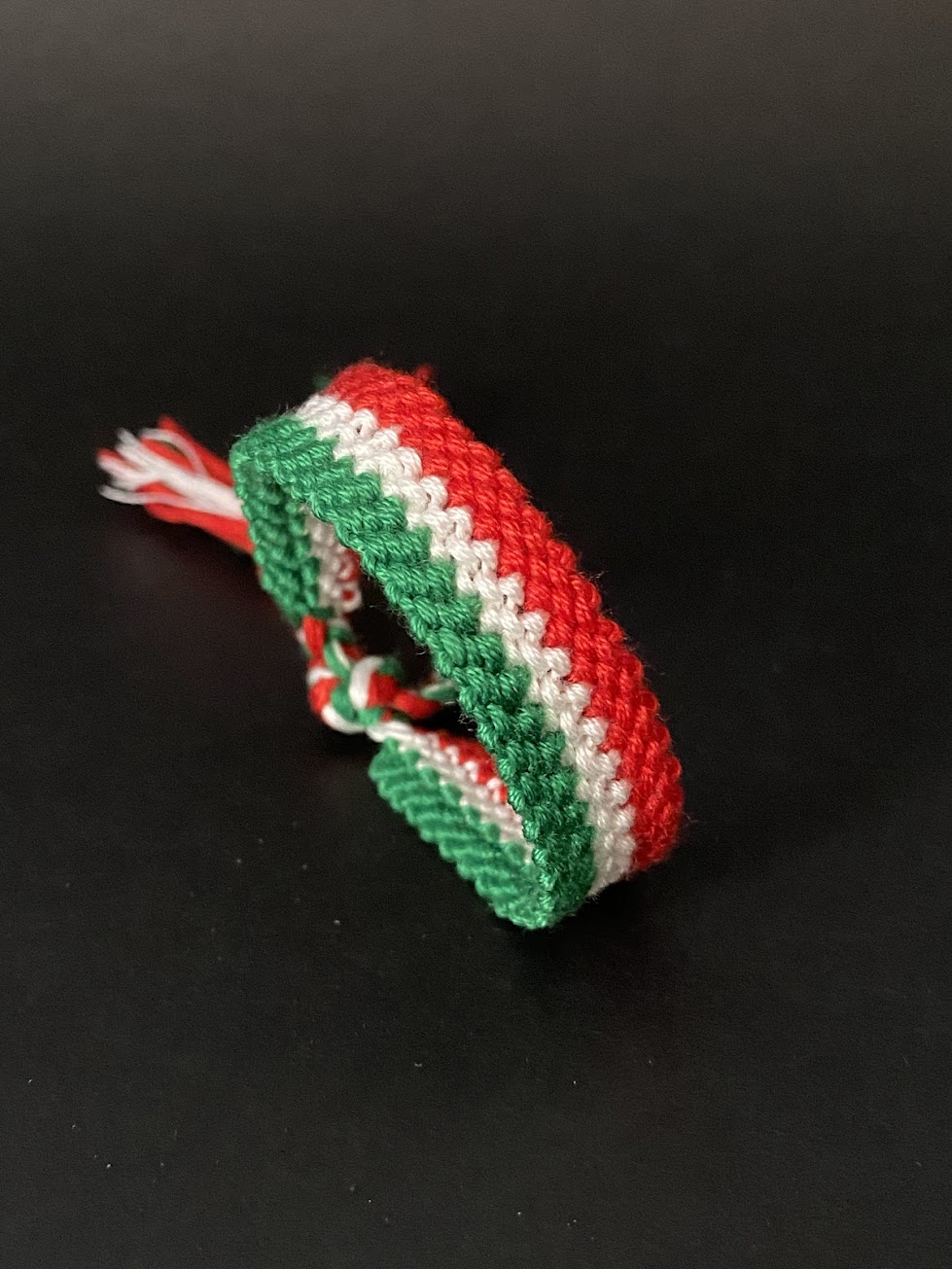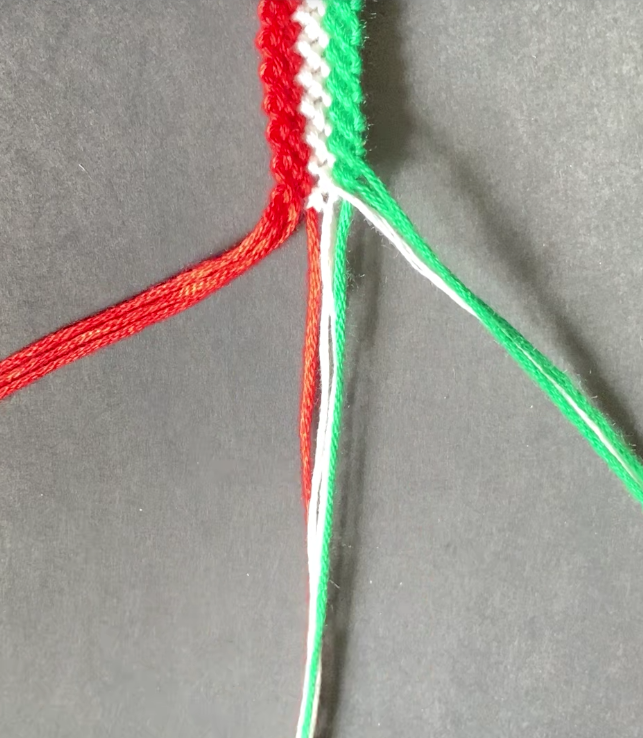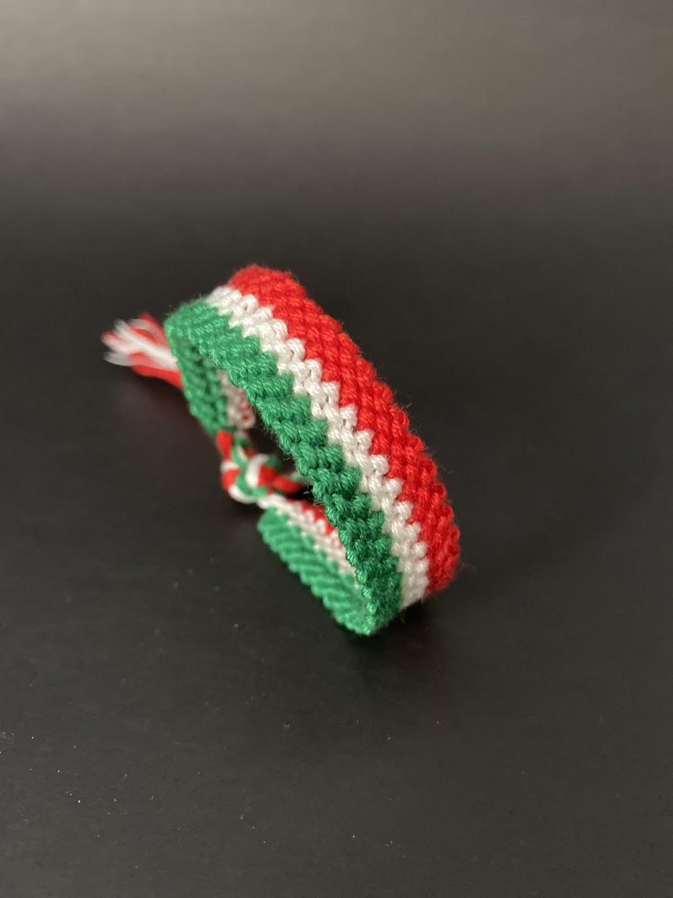 Green and red are typical colours of Christmas, from which I got an idea to make a bracelet blending these colours with the white. My friend said it is more like the Italian flag. 😉 What do you think?