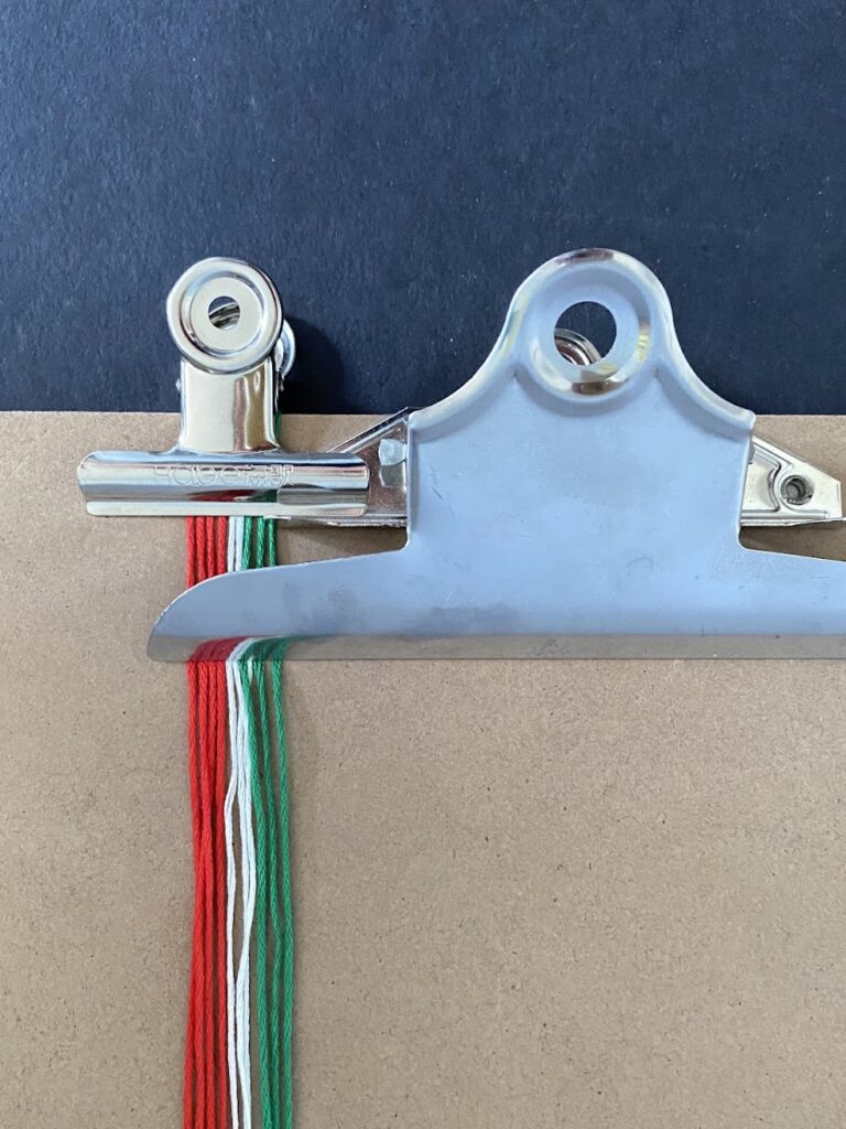 3. Fix it with a second clamp. Then follow the pattern to start braiding the first row.