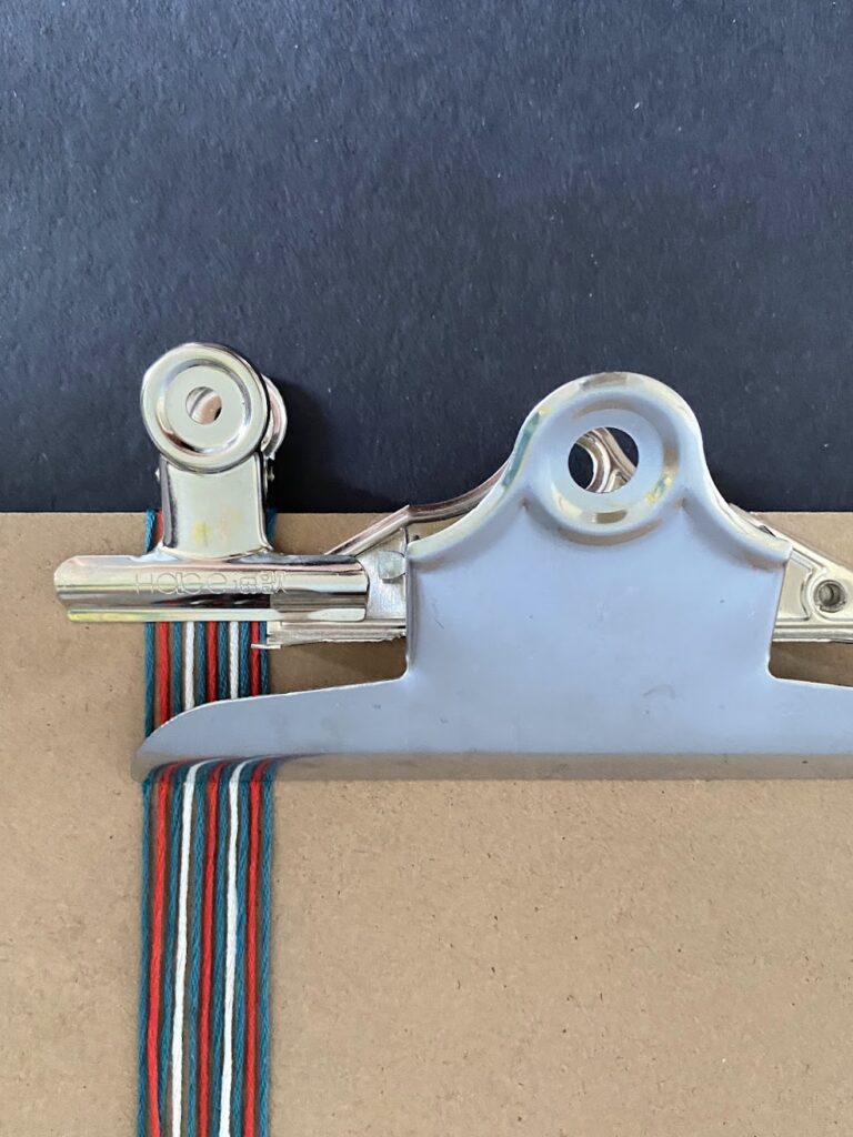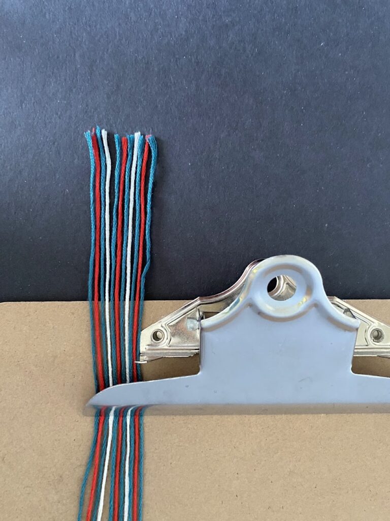 3. Fix it with a second clamp. Then follow the pattern to start braiding the first row.