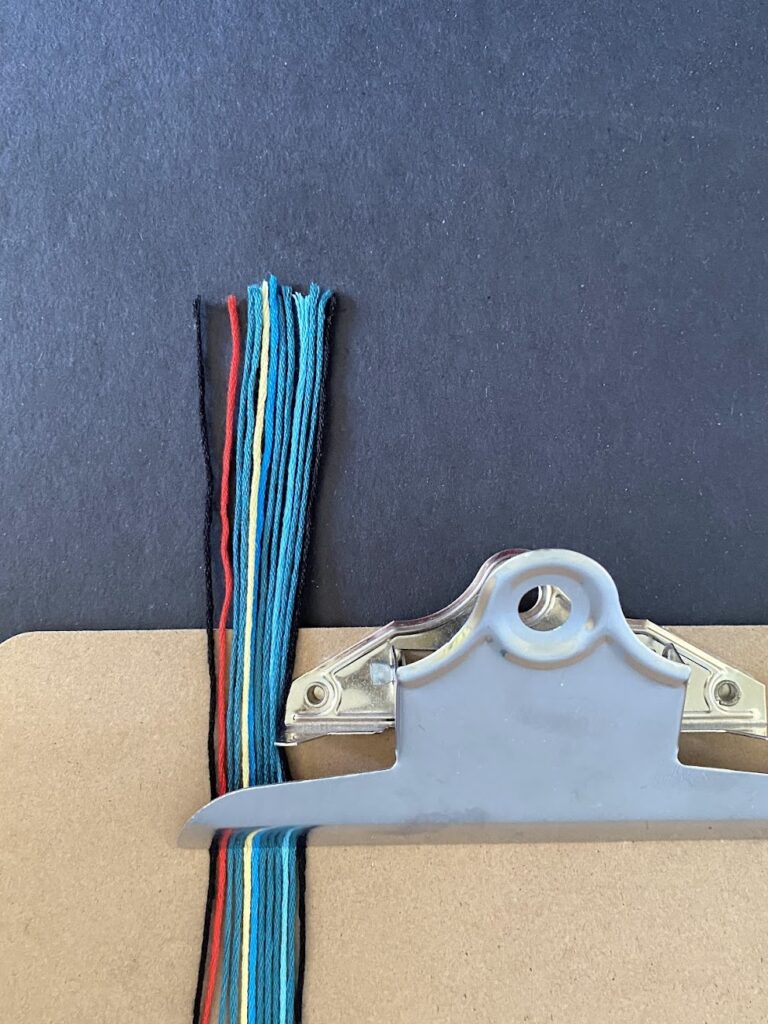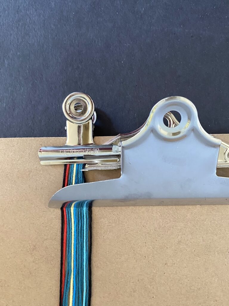 3. Fix it with a second clamp. Then follow the pattern to start braiding the first row.