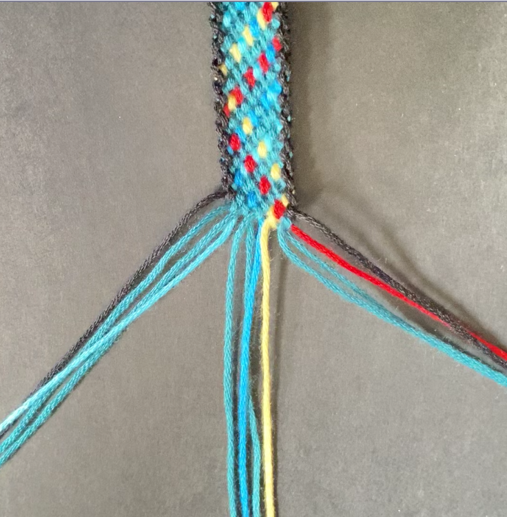 - Cut 12 cords, 100 cm (39 inch) each. Line them up in the following order.